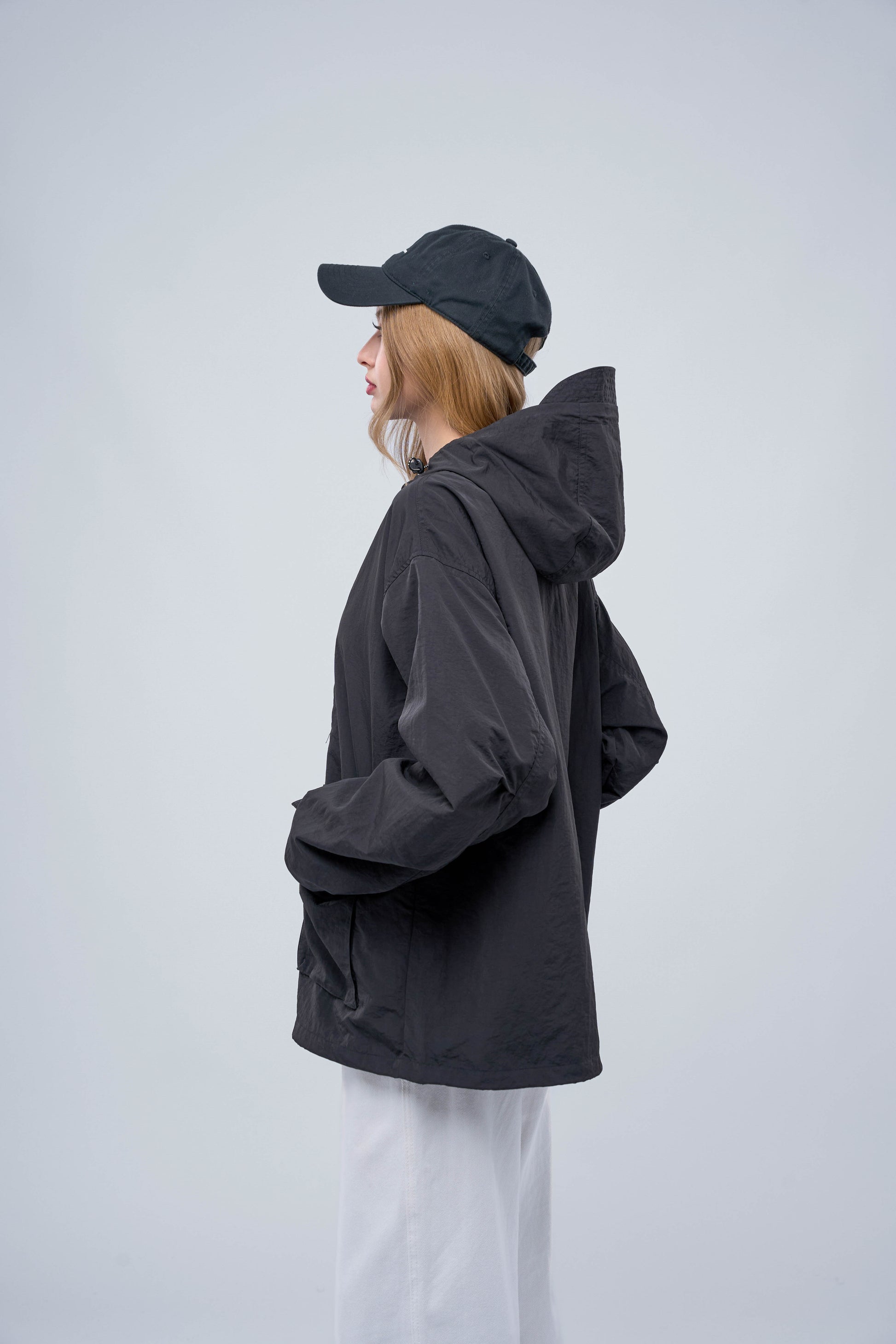 100% nylon jacket, lightweight with smooth, quick-drying fabric for comfortable wear. Water-resistant, windproof, and provides SPF50 sun protection. Ideal for outdoor activities. Features a stand-up collar, front zipper, two side pockets, and a modern hood design. Confidently protects against sun, rain, and wind. Suitable for all occasions—traveling, hiking, and climbing.