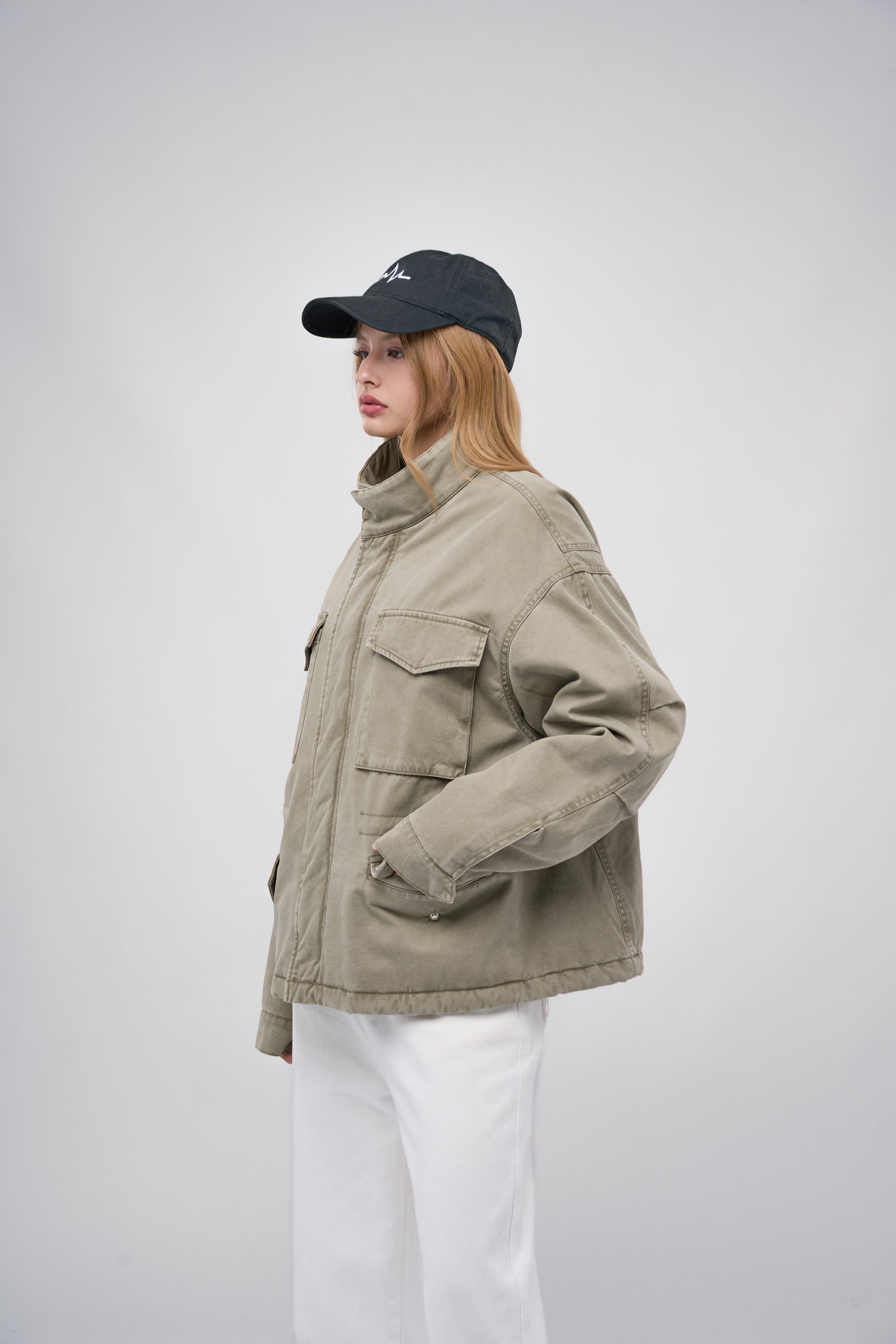 100% soft cotton, this cargo-style jacket offers a warm, breathable, and comfortable wearing experience. Designed in a straight fit with a stand collar, it delivers a clean, refined look suitable for any occasion.