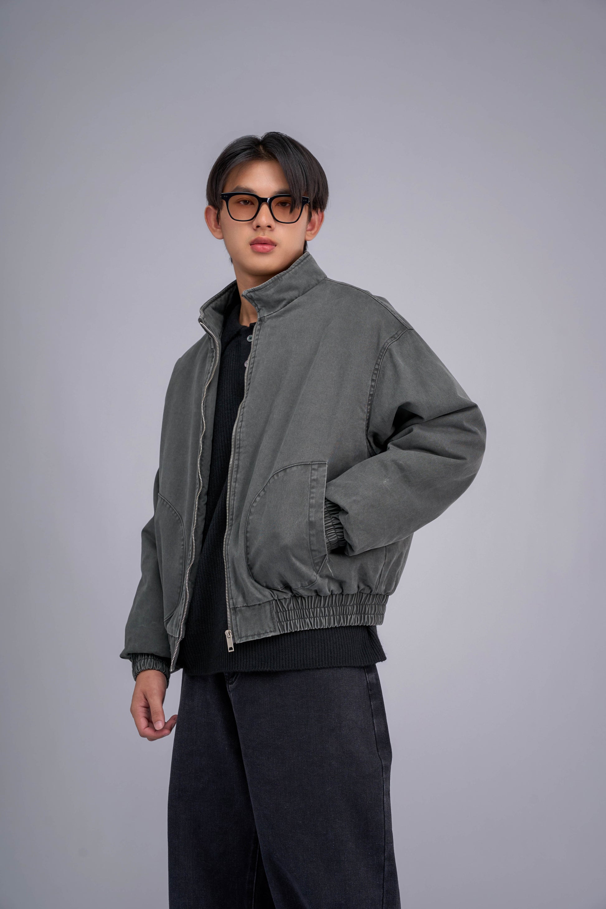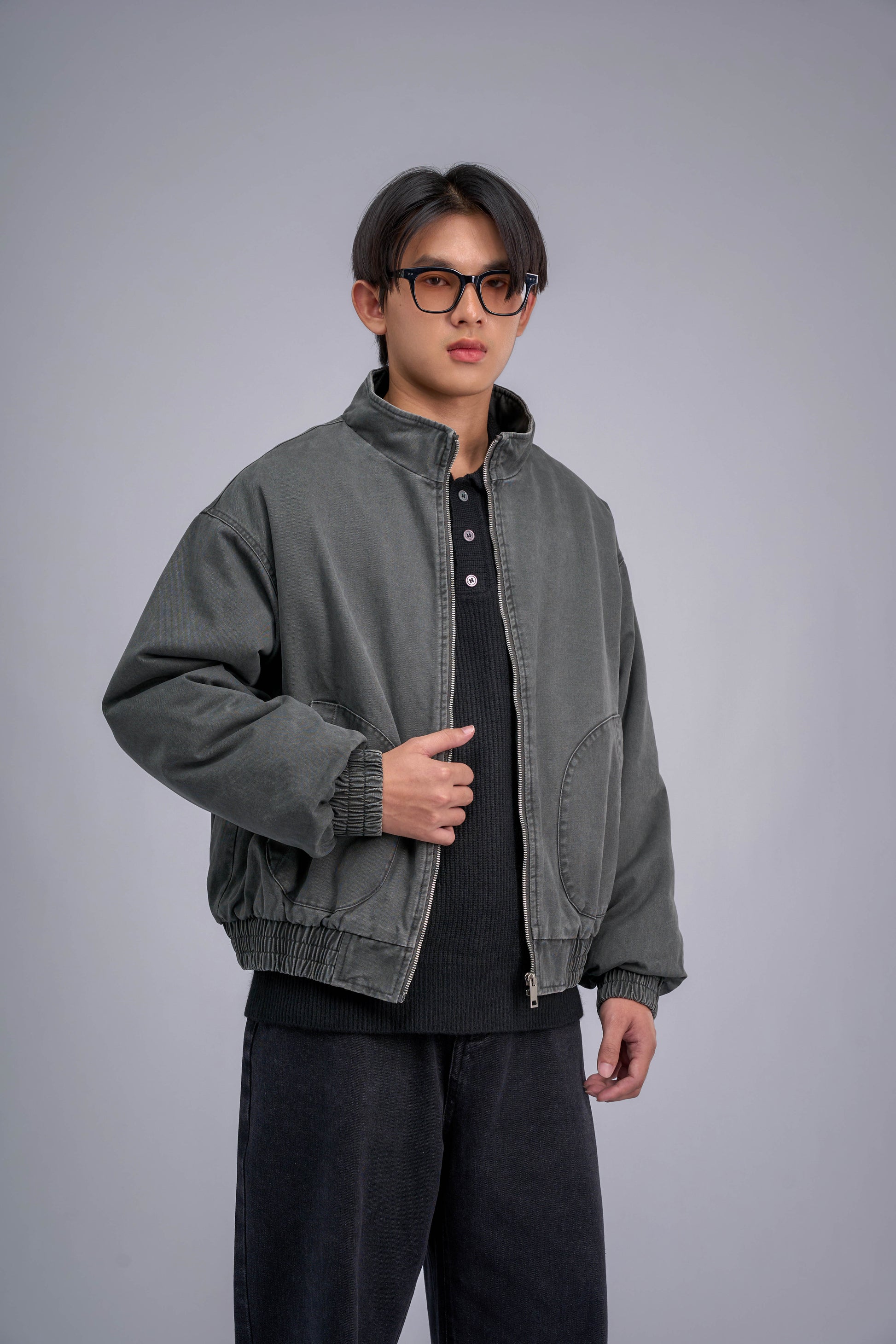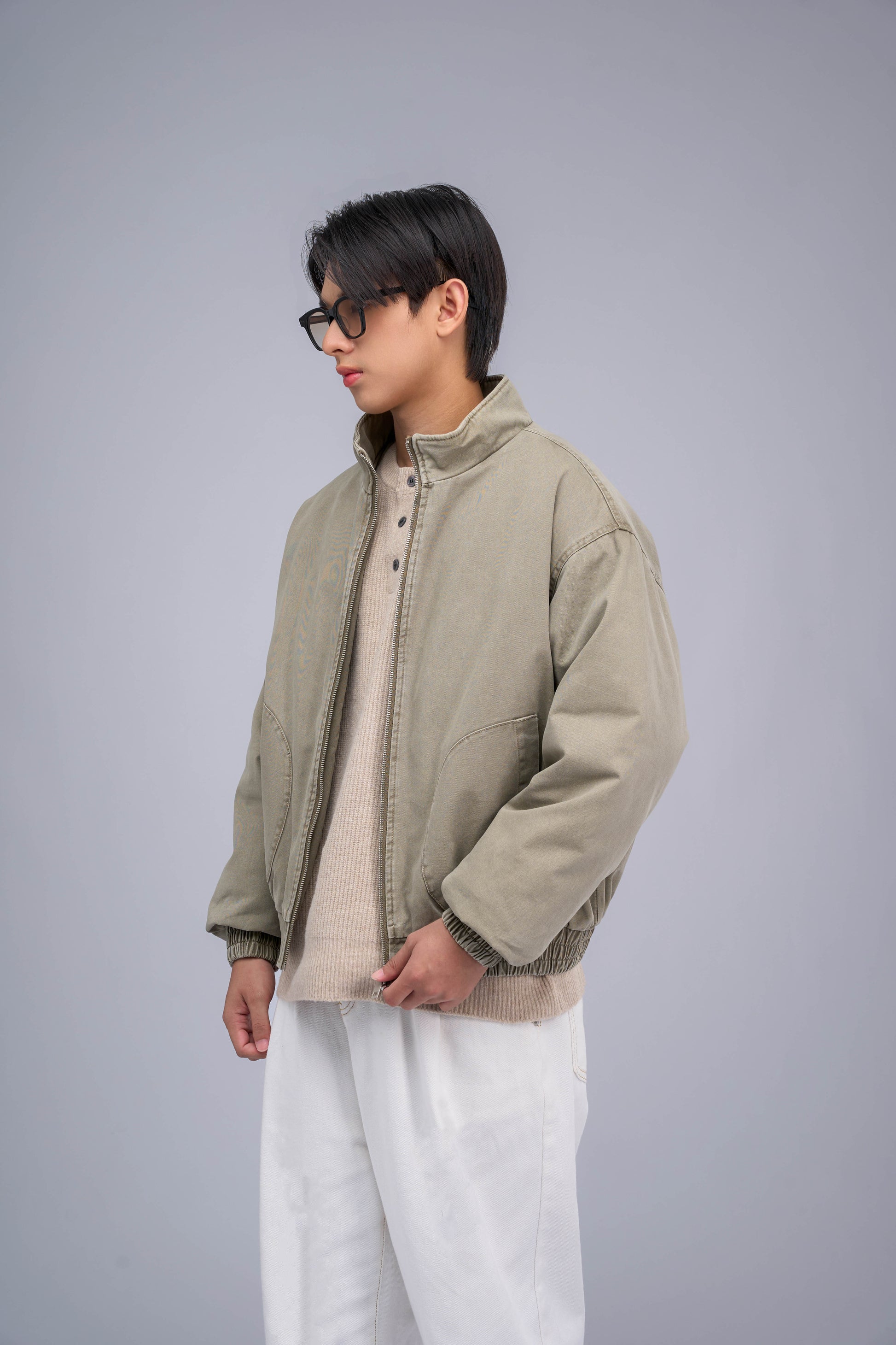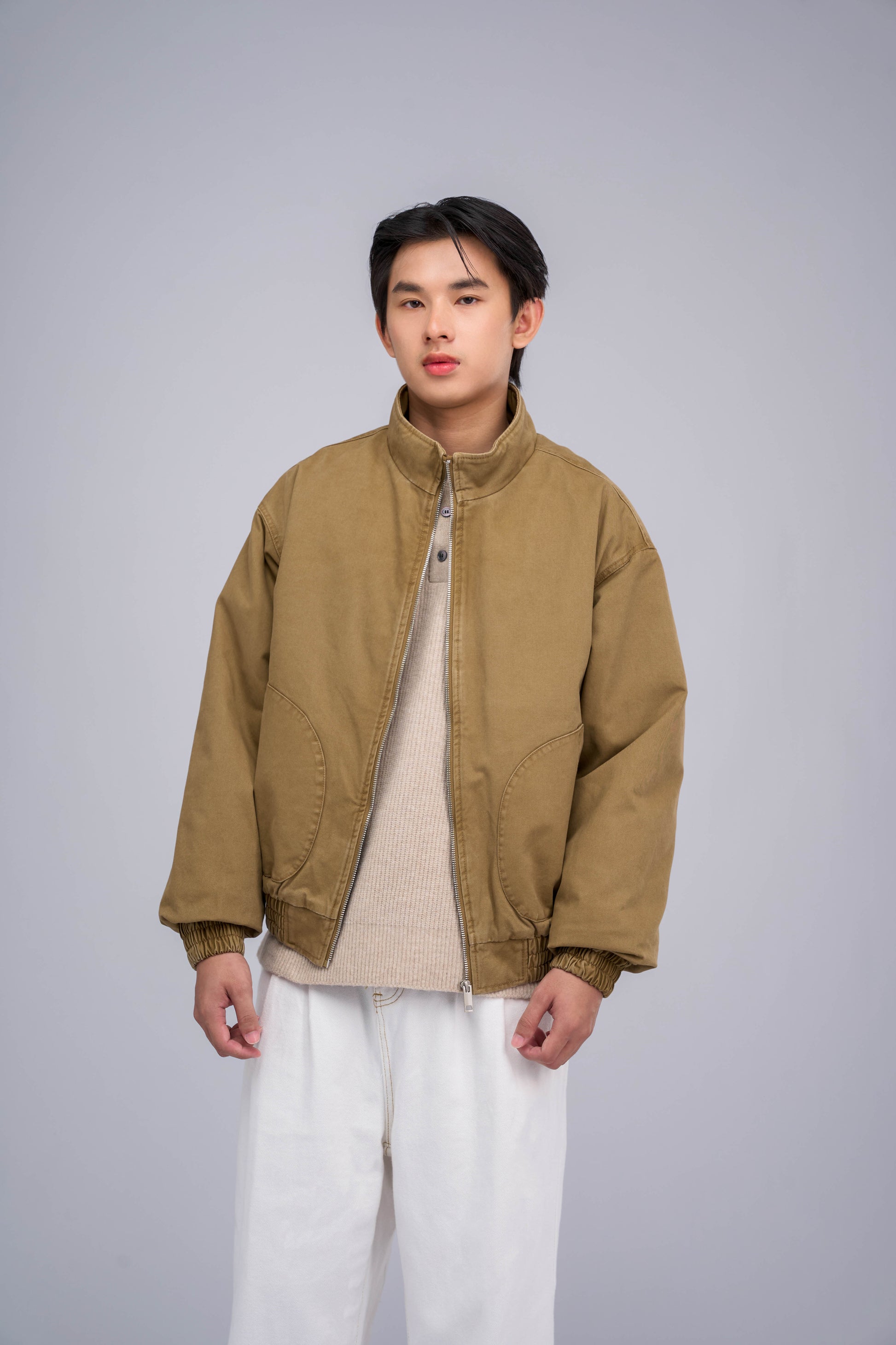 100% Cotton Bomber Jacket Made from genuine cotton fabric, soft and breathable with excellent durability. Designed with a stand-up collar, elastic cuffs and hem for a snug fit, wind resistance, and added warmth. Features relaxed long sleeves for easy movement, a front zip closure, and two side pockets.
