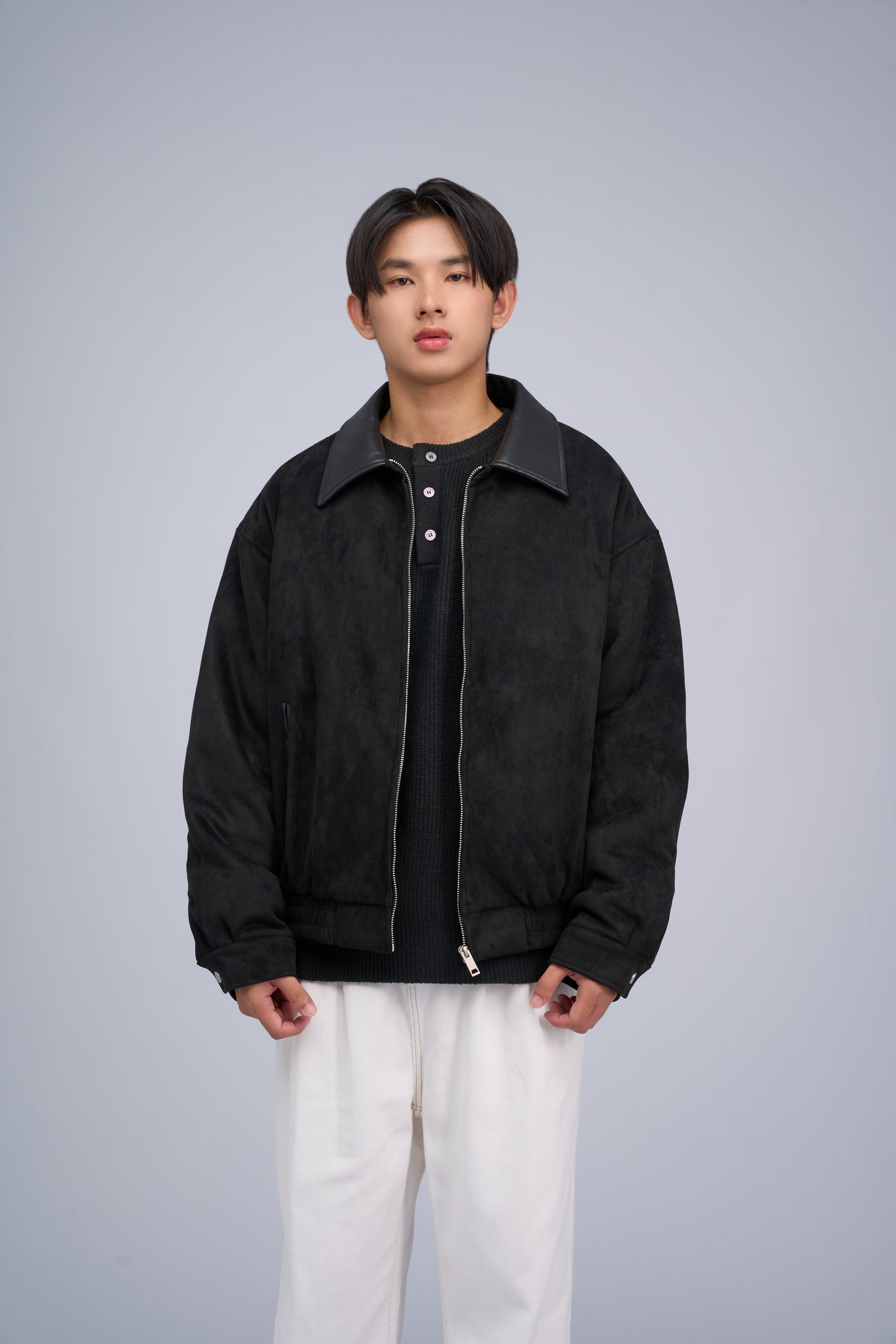 The jacket includes two side pockets for convenient storage and a full front zipper closure for easy wear and adjustable comfort. Perfect for everyday use or whenever you want a modern and versatile look.