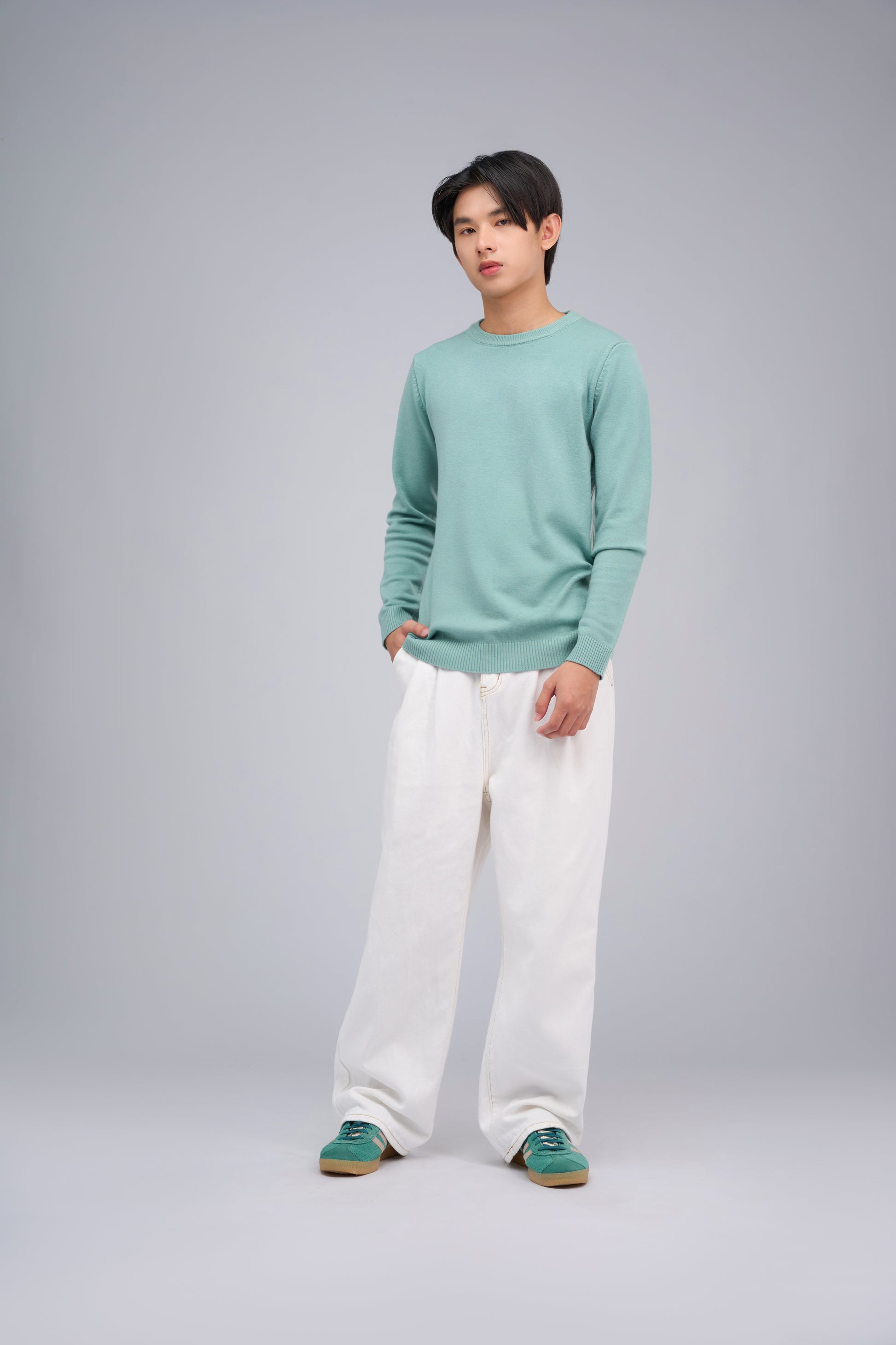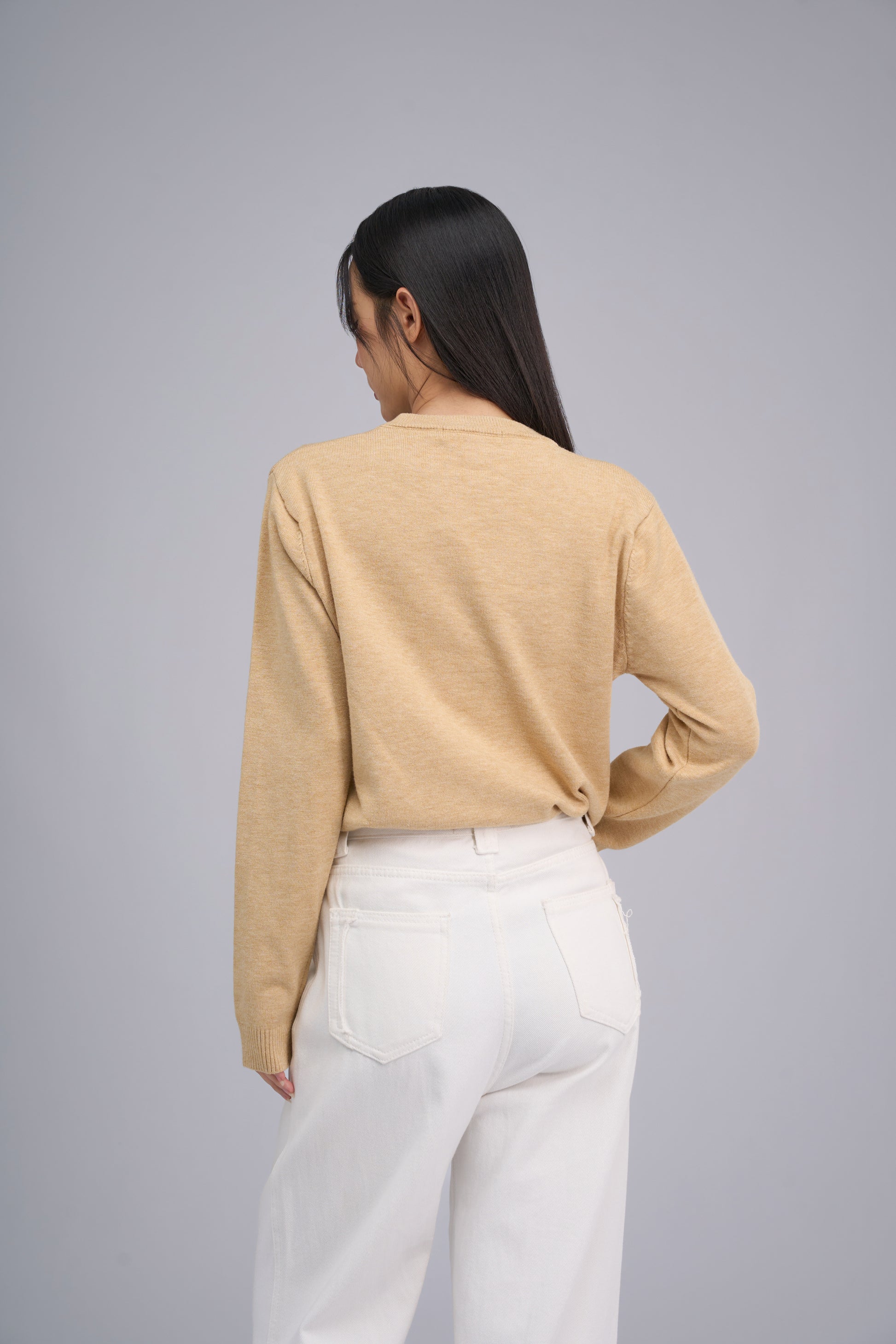 Sweater knitted from a quality blend of 51.7% viscose, 29.6% polyester, and 18.7% nylon. Soft, comfortable, breathable, and retains its shape without easily stretching out. Features a round neckline, elastic cuffs and hem to block wind and add warmth. Loose-fitting long sleeves provide ease of movement. Suitable for all occasions and easy to match with any look.
